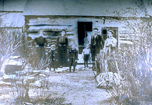 This 1870s photo captures the family of George Washington Cornelius (Jake's grandfather) and the log cabin in which the family lived while homesteading on section 2 of Milton Township, near Brainerd. The family moved to Kansas from Illinois in 1870.
