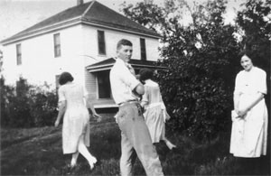 On her four summer return visits to Brainerd, Stella spent much of her free time getting into mischief with her many Mellor cousins, two of whom are pictured here in front of an unknown home.