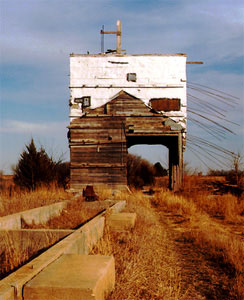 The elevator is a shell of its former self in this eerie 1999 photo. Note the grasses and wildflowers overtaking the abandoned railbed in the foreground. I gathered a bunch of the grasses and flowers and mailed them to my Grandmother, who had them framed to hang on her living room wall as a memento of her years in Brainerd as a young girl.