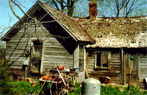The old Johnson house at the east end of Horner Street is now used by Jake Cornelius for storage. During our visit, he pried back some of the 1880s home's clapboard siding to reveal an interesting architectural detail. It seems the original builder had anchored the balloon frame stucture with intermittent slabs of cement or concrete, presumably to protect the house from the frequent Kansas windstorms.