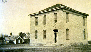 The original Brainerd schoolhouse was built of native stone and completed in 1886. It lay just east of the town limits between Neiman and Horner Streets.